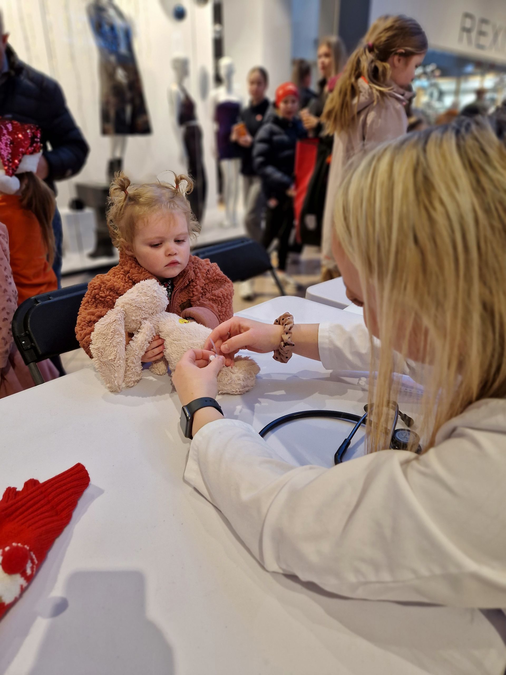 Mikil stemming ríkti á Glerártorgi á laugardaginn þegar Hollvinir Sjúkrahússins á Akureyri héldu sinn árlega Dag sjúkrahússins. Fjöldi fólks lagði leið sína á viðburðinn þar sem boðið var upp á heilsufarsmælingar og félagar í stjórn Hollvina skráðu nýja meðlimi í samtökin. Einn vinsælasti viðkomustaðurinn var dúkku- og bangsaspítalinn þar sem börn fengu að koma með dúkkur og bangsa í skoðun. Í nokkrum tilfellum þurfti að sauma bangsa eftir nákvæma skoðun. Aðrir fengu plástra eða umbúðir fyrir tuskudýrin sín. „Það er varla hægt að hugsa sér jól án þess að við Hollvinir stöndum vaktina á Glerártorgi,“ sagði Jóhannes G. Bjarnason, formaður Hollvina. „Á þessu ári höfum við náð að gera mikið gagn fyrir sjúkrahúsið með framlögum okkar. Meðal annars höfum við gefið hitakassa, þvottavélar fyrir speglunardeild, öndunarmælingatæki og tvær glænýjar speglunarstæður.“ Hann bætti við að á næsta ári muni samtökin ekki slá slöku við og halda ótrauð áfram söfnun fyrir tækjum og búnaði. Á nýrri heimasíðu samtakanna er hægt að skrá sig sem félaga eða styrkja samtökin með peningagjöf - sjá hér. Ragnheiður Halldórsdóttir, framkvæmdastjóri lækninga SAk stóð einnig vaktina með stjórn Hollvina: „Hollvinir eru okkur ómetanlegir. Þeir styðja við starfsemi sjúkrahússins á svo margan hátt og hjálpa okkur að bæta þjónustu við sjúklinga.“ Dagur sjúkrahússins tókst afar vel og var góð þátttaka til marks um sterka tengingu samfélagsins við sjúkrahúsið og Hollvini. Fleiri myndir má sjá á Facebook-síðu Hollvina hér.